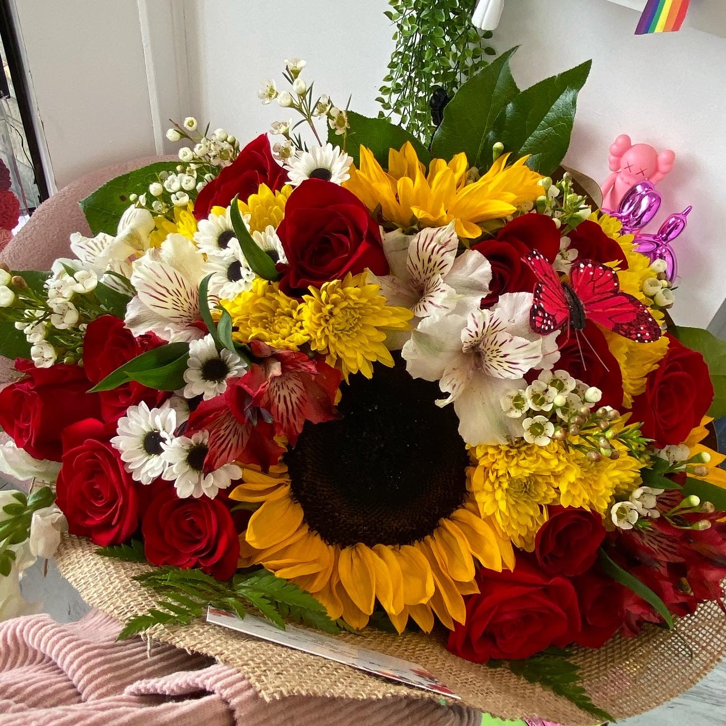 Wrapped Roses & Sunflowers